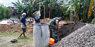 Babinsa Gapura Bantu Pengecoran Pondasi Rumah Warga