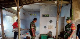 Dampingi Tenaga Kesehatan, Babinsa Laksanakan Pendampingan Fogging Di Desa Binaannya