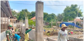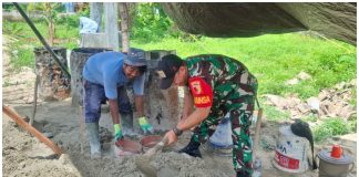 Babinsa Koramil 23/Giligenting Bantu Racik Campuran Semen Percepat Pembangunan Koperasi Merah...