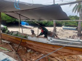 Selalu Ada, Babinsa Bantu Perbaikan Perahu Warganya