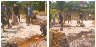 Semangat Ramadan, Satgas TMMD 127 Lanjutkan Pasang Paving