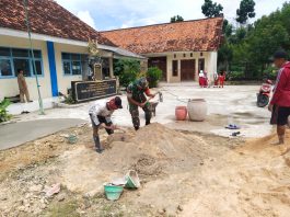 Babinsa Saronggi Bantu Pengecoran Halaman SD, Wujud Kepedulian TNI terhadap Dunia Pendidikan