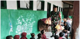 Wujud Kepedulian TNI, Babinsa Serka Sunarko Dampingi Penyaluran MBG di SDN...