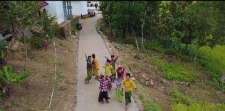 Jalan Aspal Hasil TMMD di Mandala Bikin Santri Sumringah