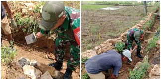Semangat Gotong Royong Bantu Pembuatan Irigasi, Babinsa Karya Bakti Dengan Masyarakat
