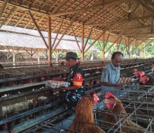 Babinsa Gapura Bantu Peternak Panen Telur di Desa Banjar Barat