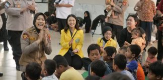 Polri Bersama Mahasiswa Beri Trauma Healing ke Korban Banjir Ciliwung
