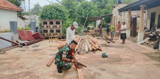 Percepat Proses Atap Rumah, Babinsa Bersama Masyarakat Gotong Royong Potong Kayu